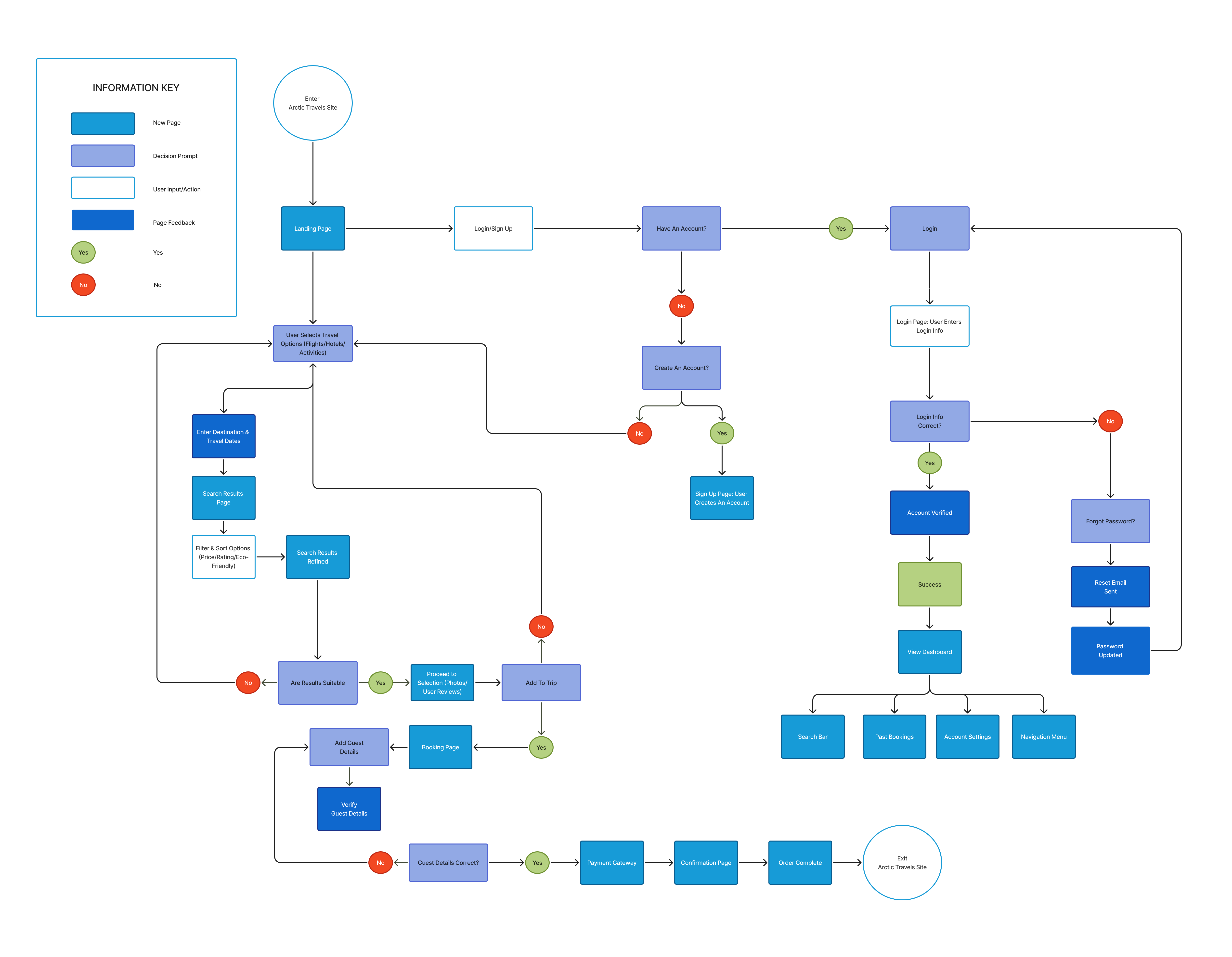 Once I had a clear understanding of user needs, I mapped out the journey travellers would take through the platform. The aim was to create a flow that felt intuitive and supportive, guiding users step by step without adding friction.