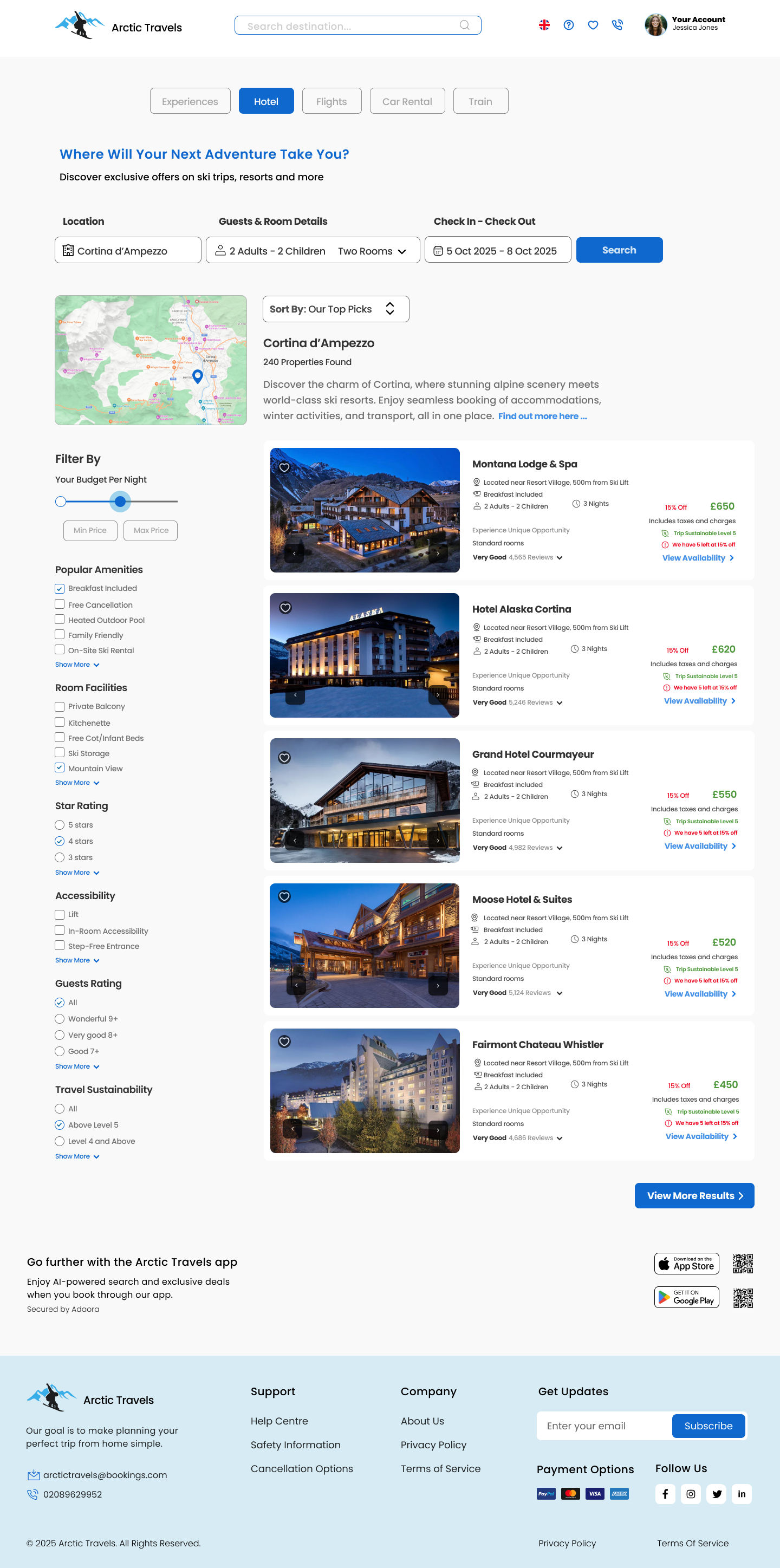 What became clear was that large providers like Booking.com and Expedia are strong on functionality and choice but often at the cost of clarity and inspiration. Niche platforms like Epic Polar offer personality and purpose but struggle with scale and usability. This gap highlighted an opportunity for Arctic Travels to combine the best of both worlds: a platform that is functional and easy to use, while also delivering a more engaging experience.