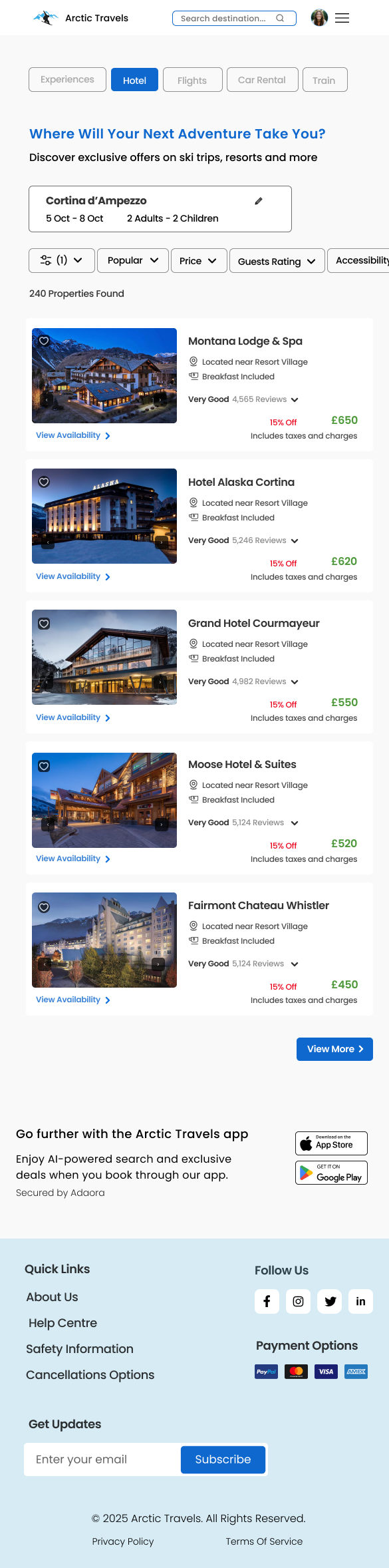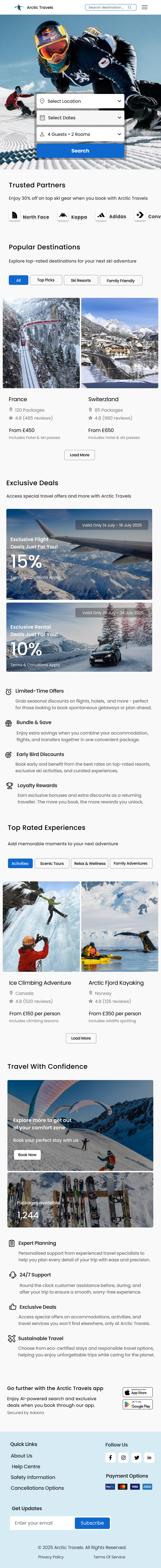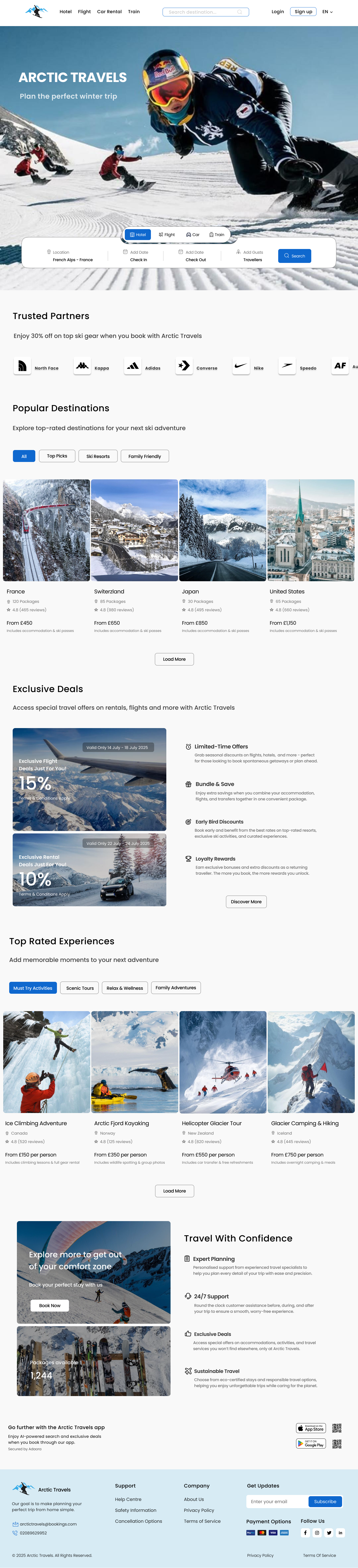 Arctic Travels is a concept travel platform designed to make planning winter holidays feel less overwhelming and far more enjoyable . Too often, travel sites bombard people with endless options, complicated booking flows and cluttered layouts. I wanted to take a different approach, one that felt inspiring, easy to navigate and rooted in the excitement of planning a trip.