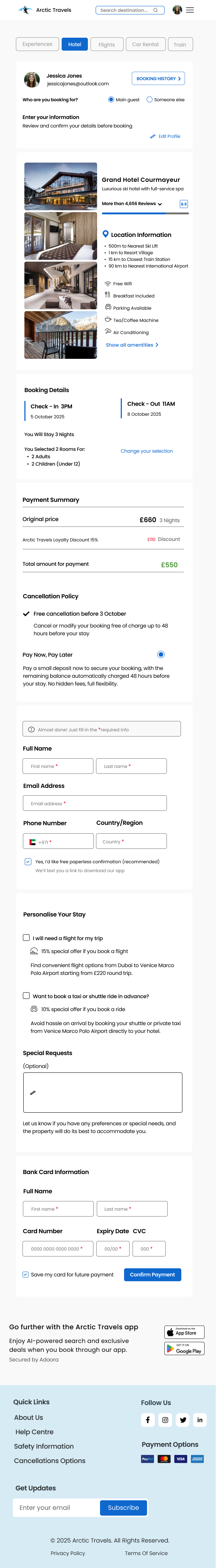 Key actions like choosing a destination, setting dates and filtering options were placed upfront, reflecting the natural way people plan trips. From there, the flow branched into flexible booking choices, whether that meant adding activities, comparing packages or tailoring a trip for families.