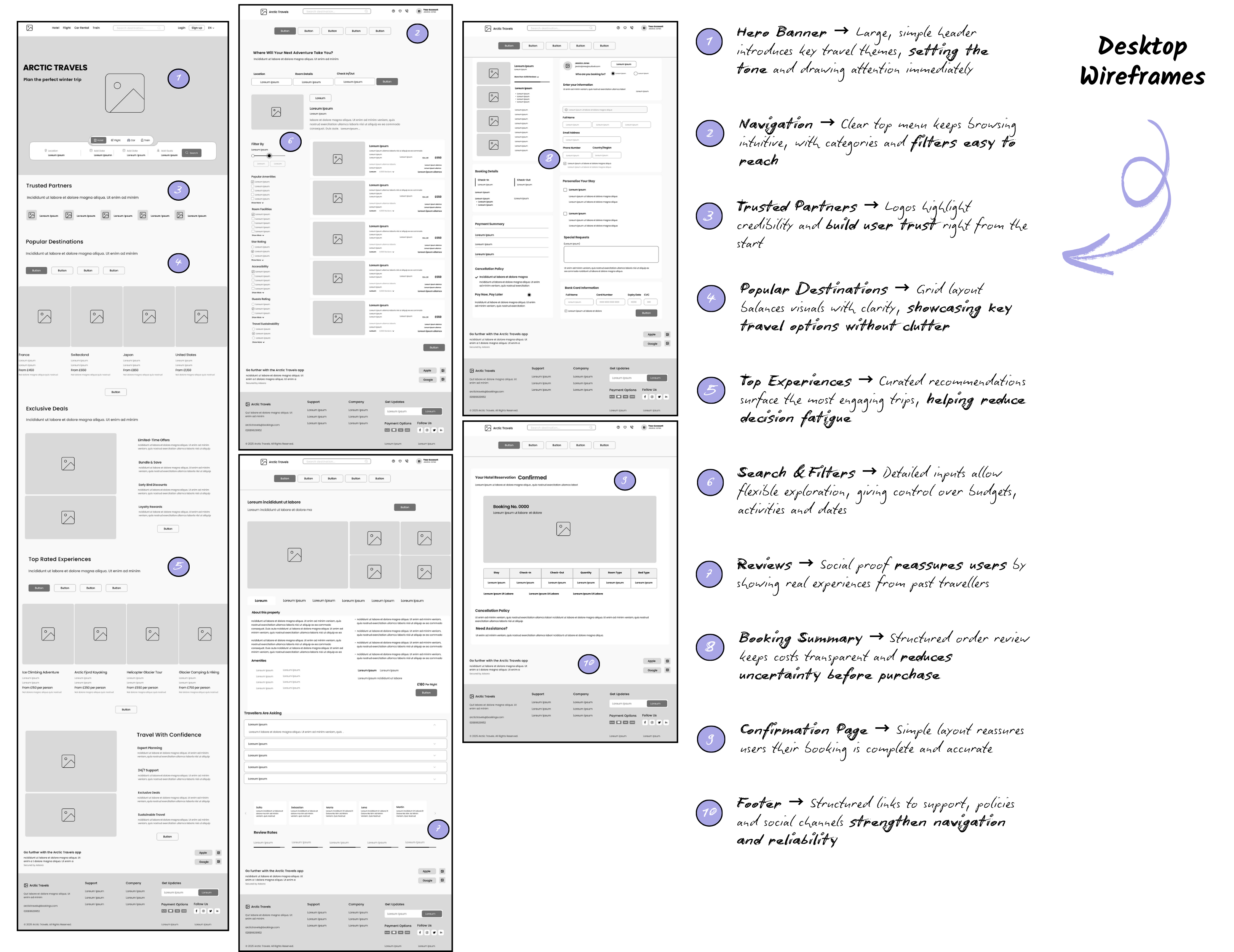 I carried out a competitor analysis to understand how existing platforms approach travel booking. This wasn't about copying features but about identifying strengths I could learn from and weaknesses I could improve on. Looking at both global platforms and niche providers gave me a clear picture of where Arctic Travels could stand out.