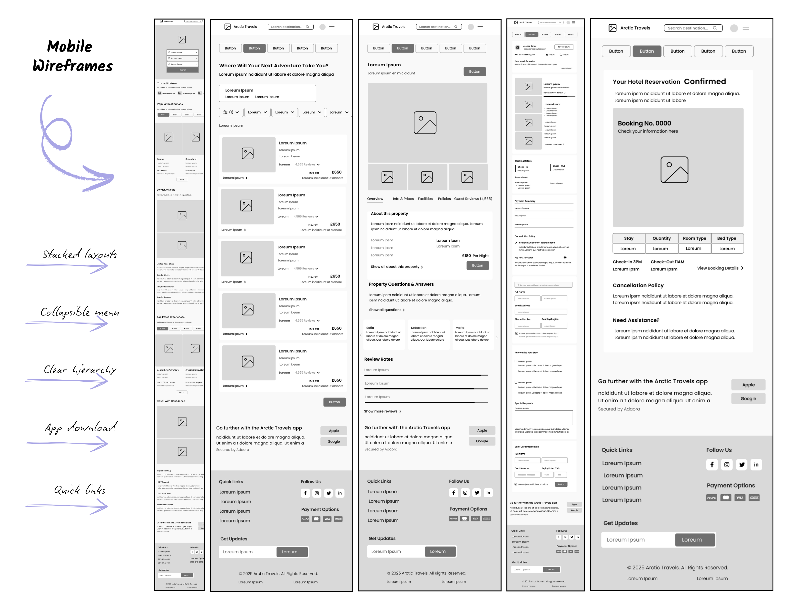 Working through wireframes also gave me the freedom to test different layouts and refine the flow without being distracted by visual details. It was about building trust into the experience early on, making sure that even in black and white, the platform felt intuitive and ready for all types of travellers.